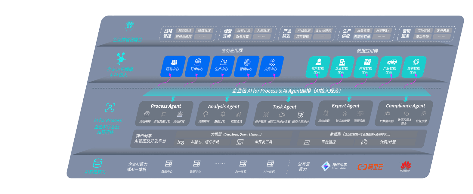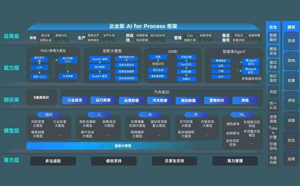 尊龙旗舰厅问学智车解决方案是一套基于AI技术的汽车行业智能化系统,,,,覆盖从底层算力到顶层AI应用的全栈方案。。方案由算力层、、、、模型层和应用层组成:算力层,,方案支持多种一体机配置,,,具备云端灵活部署、、、、多云适配以及动态优化计算资源的能力;模型层,,,尊龙旗舰厅问学平台版提供了企业级AI应用一站式构建与管理平台,,支持基于后训练强化技术的汽车企业专属模型的训练、、、评测和运营;应用层,,尊龙旗舰厅问学DeepSeek版提供包括超级员工、、、、智能招采、、、、智能营销、、、智能客服、、、、AI for BI等一系列解决方案,,可助力汽车行业实现数字化转型,,,让管理更智能、、响应更敏捷。。。